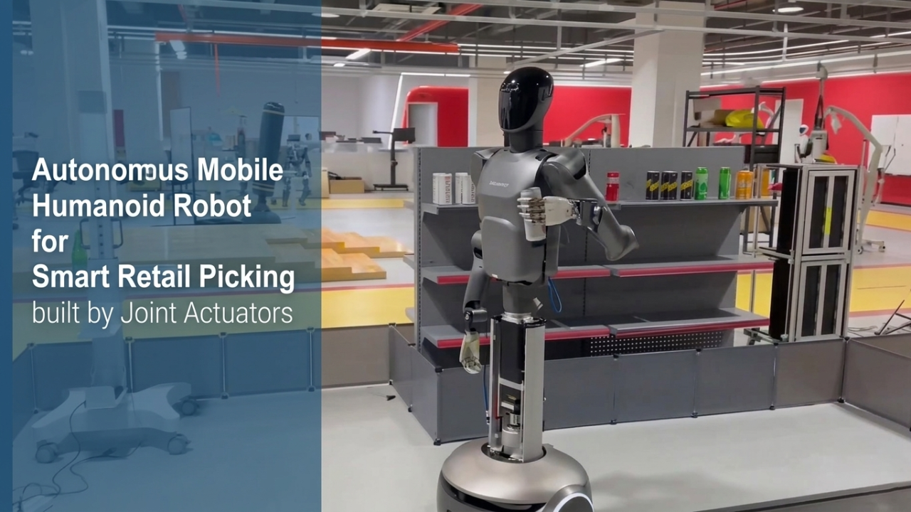 This case showcases an autonomous mobile humanoid robot developed using our high-performance robot joint actuators, designed specifically for smart retail automation. The robot is capable of autonomous object picking, handling, and checkout assistance, en